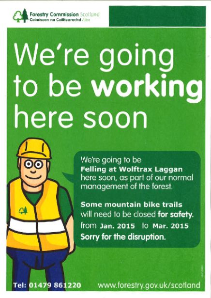The Forestry Commission have warned us that there will be trail closures at Laggan Wolftrax during January to March 2015. Check on Facebook for current updates, or ring us on: 01528 544 366.