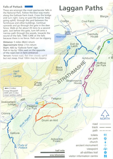 Laggan Community Association, with the help of Cairngorm National Park, have produced a new leaflet about walks around Laggan. You can pick up a copy from the Laggan Forest Trust office at Wolftrax (open 3 days a week, usually Monday, Tuesday and Thursday) or from the Pottery Coffee Shop just down the road.