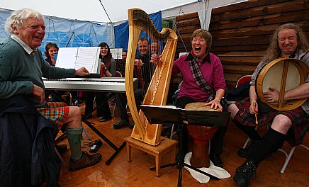 The Badenoch Fiddlers made a triumphal return to Strathmashie last night with a fantastic session of traditional music. After a very rainy evening of Midsummer Music in 2011 and a very spooky Hallowe'en performance, they came back because of our brilliant audiences - who are made of stern stuff and are very appreciative!