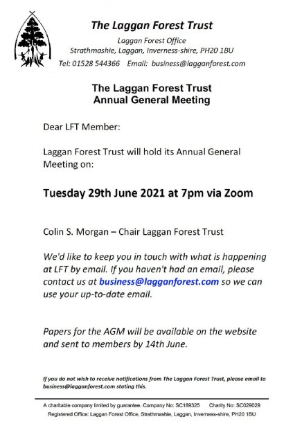 AGM The Laggan Forest Trust - 29th June 2021 at 7pm VIA ZOOM