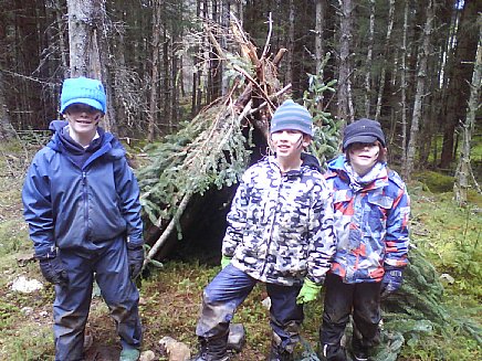 The children dug seep wells to collect water which they then filtered, and built shelters from materials to be found on the forest floor. After dealing with the essentials of food, drink and shelter, they turned their attention to starting a fire…with no matches.
