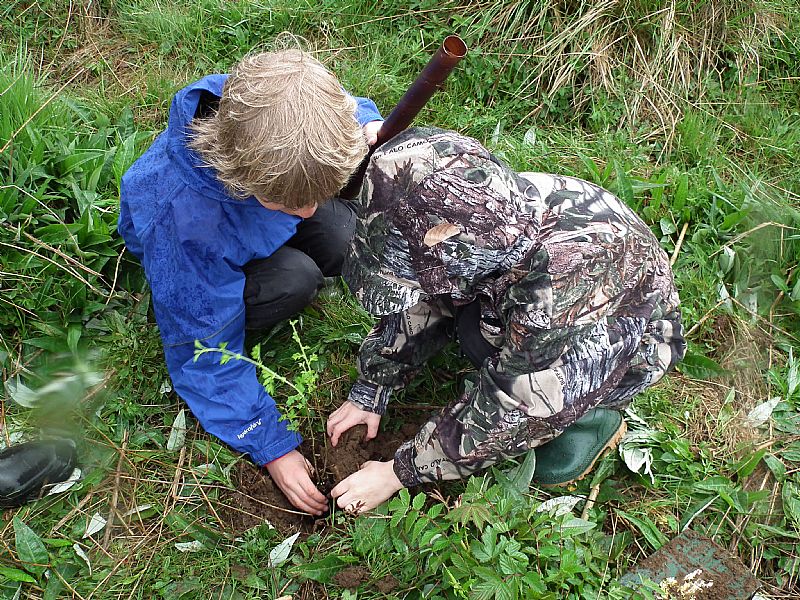 Youngsters (camouflaged!) planting seedlingYoungsters (camouflaged!) planting seedlings